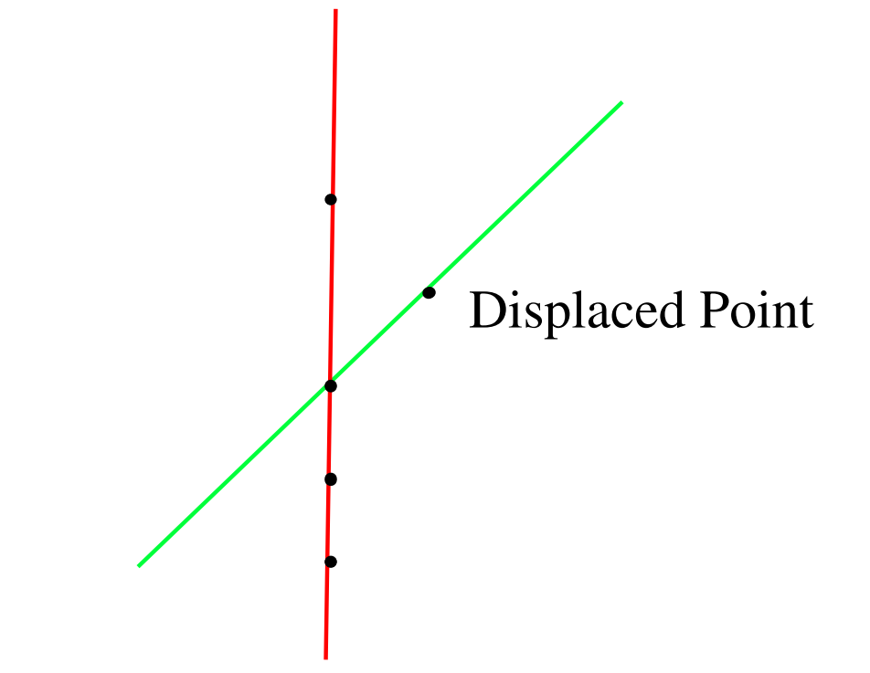 To get an initial hold of this problem, imagine some points, all in the same line. We know there is some unique line passing through all of them. Now, we displace one of these points slightly.