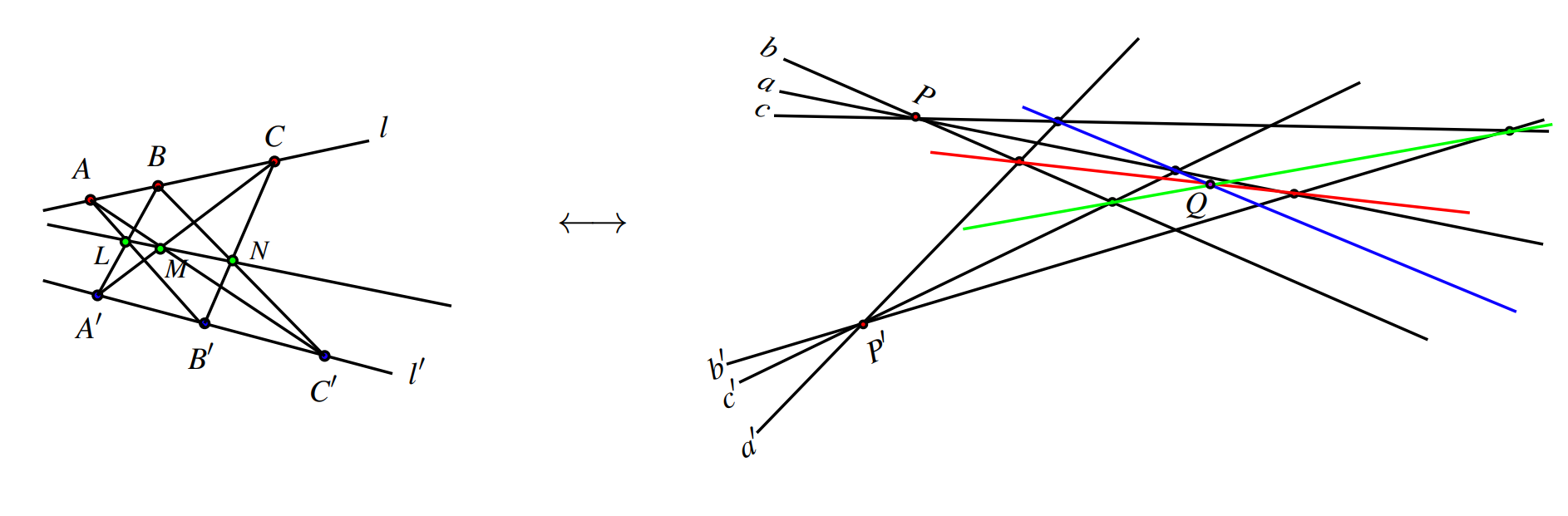 Theorem 3.2: (Pappus” Theorem) Let be two lines in the plane. Let
